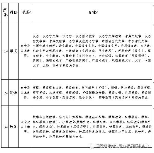 (2)小学岗位:具备全日制大专及以上学历,师范类专业。